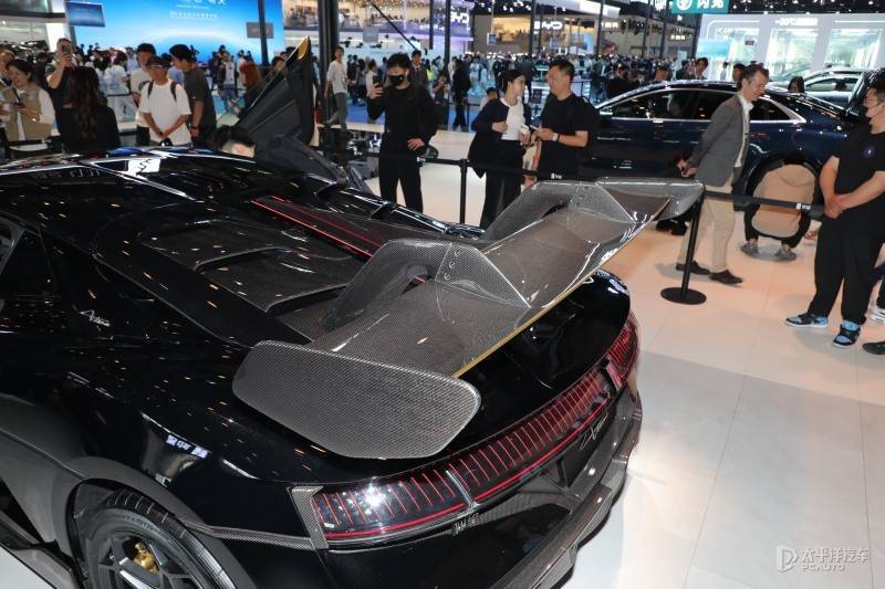 轮胎方面,该车搭载与佳通定制的GitiSport e・GTR² PRO半热熔轮胎,为国内首款设计时速超500km/h的赛道轮胎,前后均采用325/35 R20规格,适配赛道动态操控需求。车身采用碳纤维单体壳座舱,碳纤维用量超110kg,兼顾轻量化与被动安全。