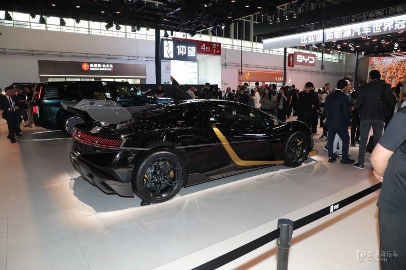 仰望U9 Xtreme“破晓时刻 设计灵感,来源于该车打破世界纪录当日清晨的日出光影。车身漆面加入微米级超细金粉,通过多层清漆工艺呈现动态光影效果;哑光金部件采用非遗大漆打磨工艺,强化车身质感。