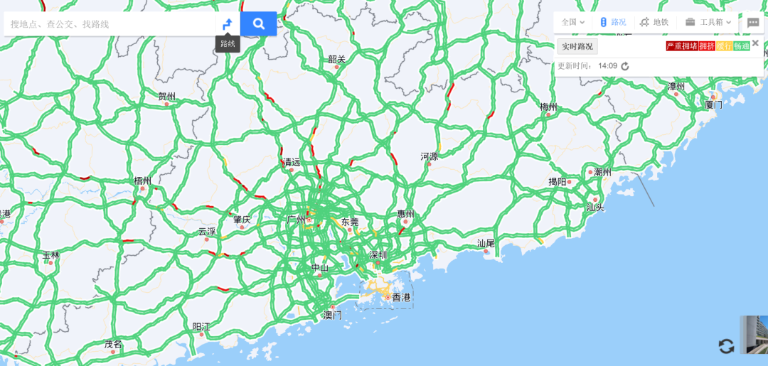 截至2月7日14时许,全省高速缓行路段有:广佛肇高速公路(肇庆市高要区西角立交至禄步镇)、京港澳高速公路(清远市佛冈县汤塘镇)、广连高速公路(清远市阳山县青莲镇至新田隧道)、二广高速公路(肇庆市广宁县石门隧道至广宁互通、肇庆市广宁县宾亨收费站至坑口大桥)、深岑高速公路(佛山市高明区高村立交至更合镇、深圳市宝安区航城街道至鹤洲收费站)等。