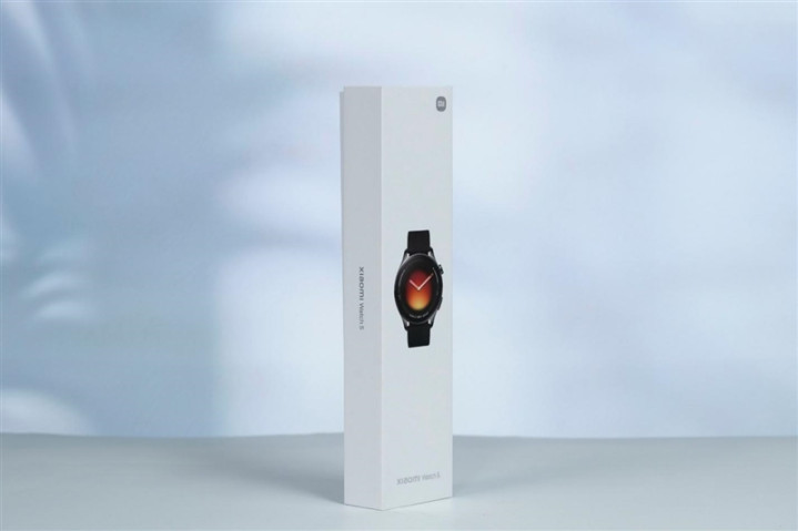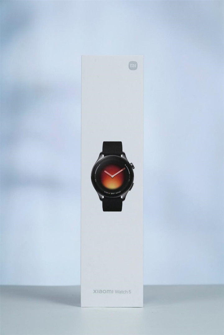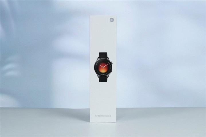 小米手表5的包装延续了小米产品一惯的简洁,全白色的纸盒正面印有小米手表5的产品图像,底部写有浅灰色的“Xiaomi Watch 5”产品名,右上角有浅灰色的小米Logo。