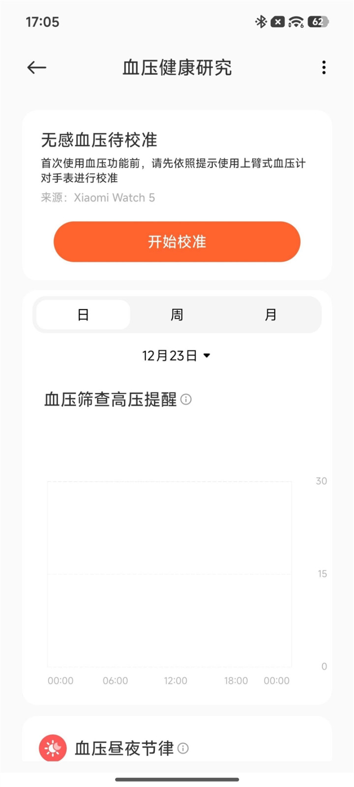 小米手表5支持基于无感PPG+血压跟踪,实际并不能直接测量当前血压,所以初次使用时需要使用专业的上臂式血压计进行测量校准,之后小米手表5就可以根据此次测量的血压值,通过医疗级微泵测量技术,进行全天血压跟踪监测,并在血压异常时发出提醒。