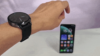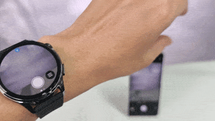 之后通过捏合动作就可以触发快门完成拍照动作,同时手表上也可以实时同步看到手机镜头拍摄的画面,自拍更方便。