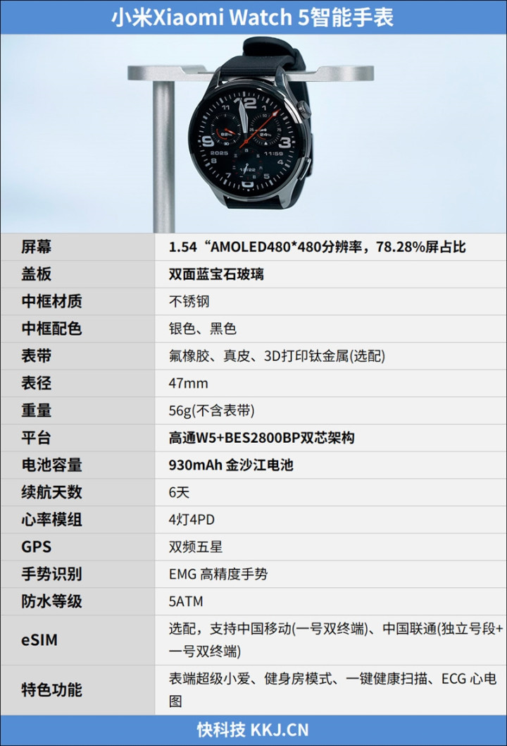 小米手表5的详细配置如下:
