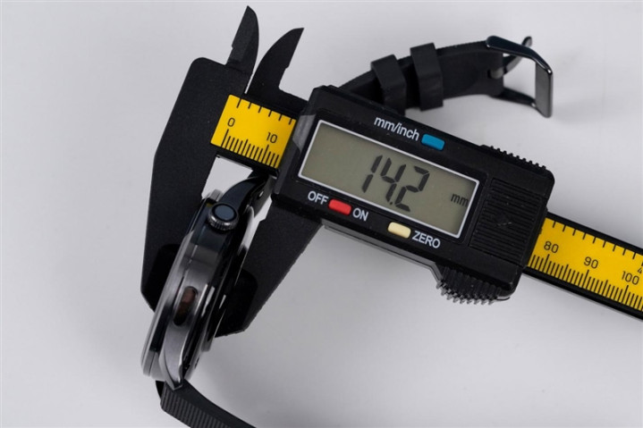 我自己的手表表盘为43mm,厚度为14mm。