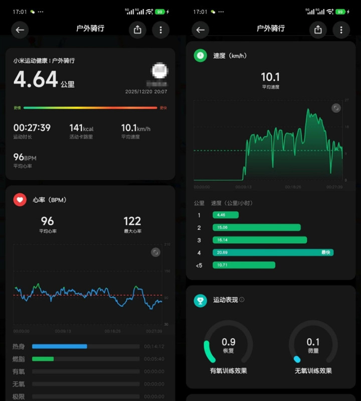 小米手表5作为小米新一代的全能旗舰手表,运动监测功能同样强大,下班骑车回家路上顺便用小米手表5记录了一下运动情况,可以看到小米手表5的监测精度和监测的数据信息量都不输专业的运动手表。